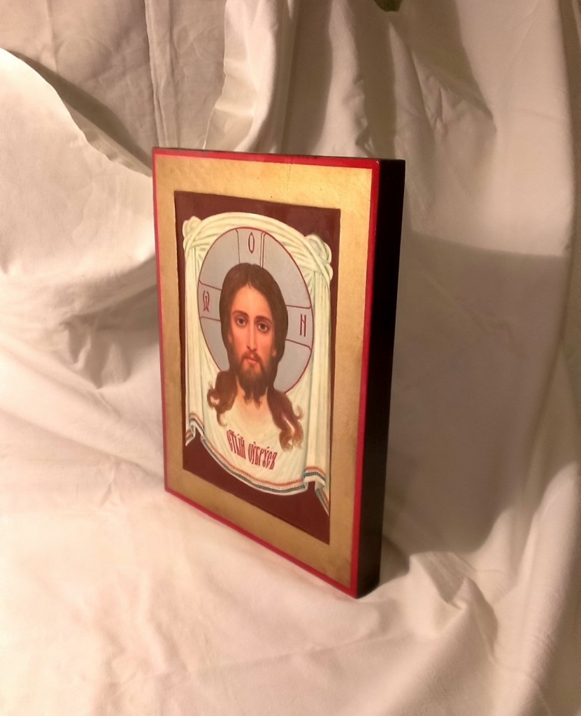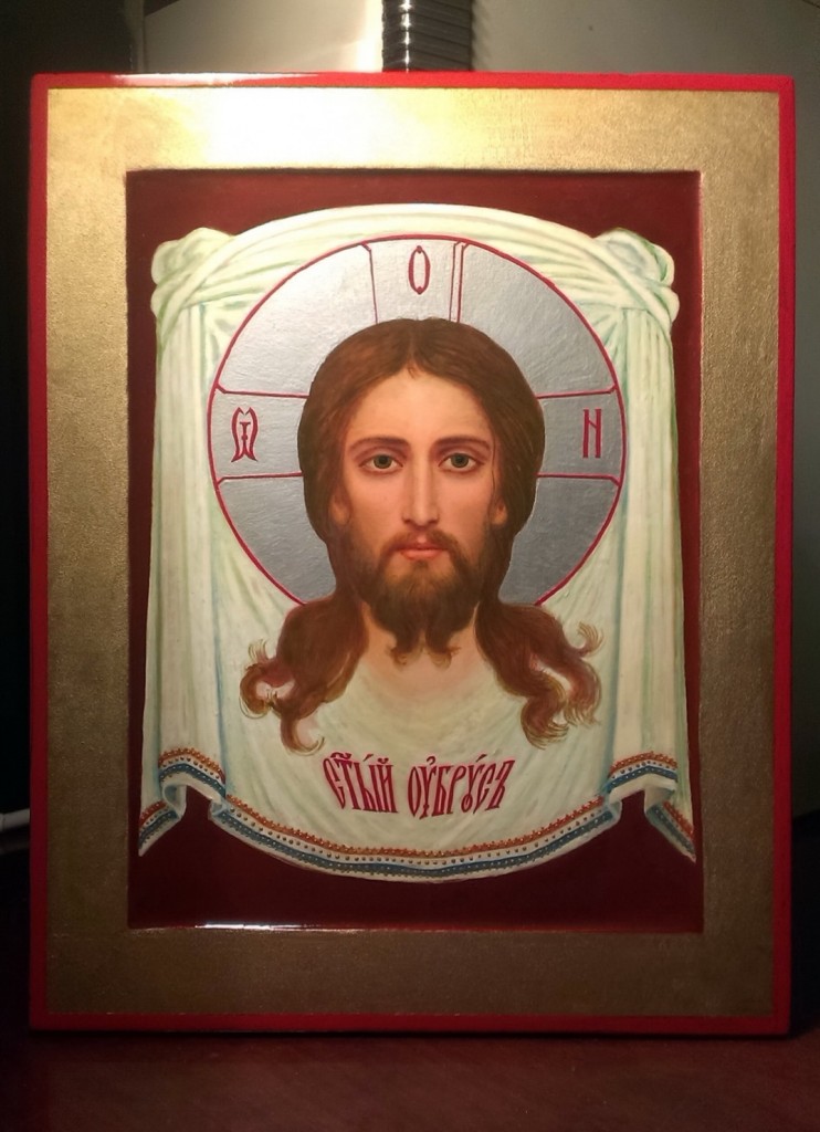 Материалы: Иконная доска с ковчегом, торцевые дубовые шпонки, левкас, твореное золото, поталь, темпера, масло, олифа.
