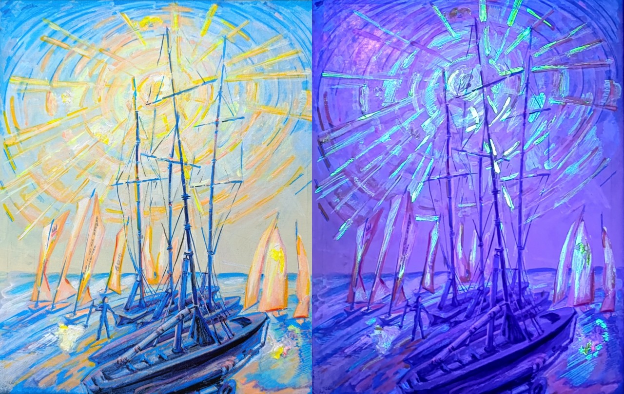 Регата. Солнце/луна. День и ночь. Серия 'яхт-клуб ". Проект «светофизика в живописи» ZhNataly. Светящаяся картина.