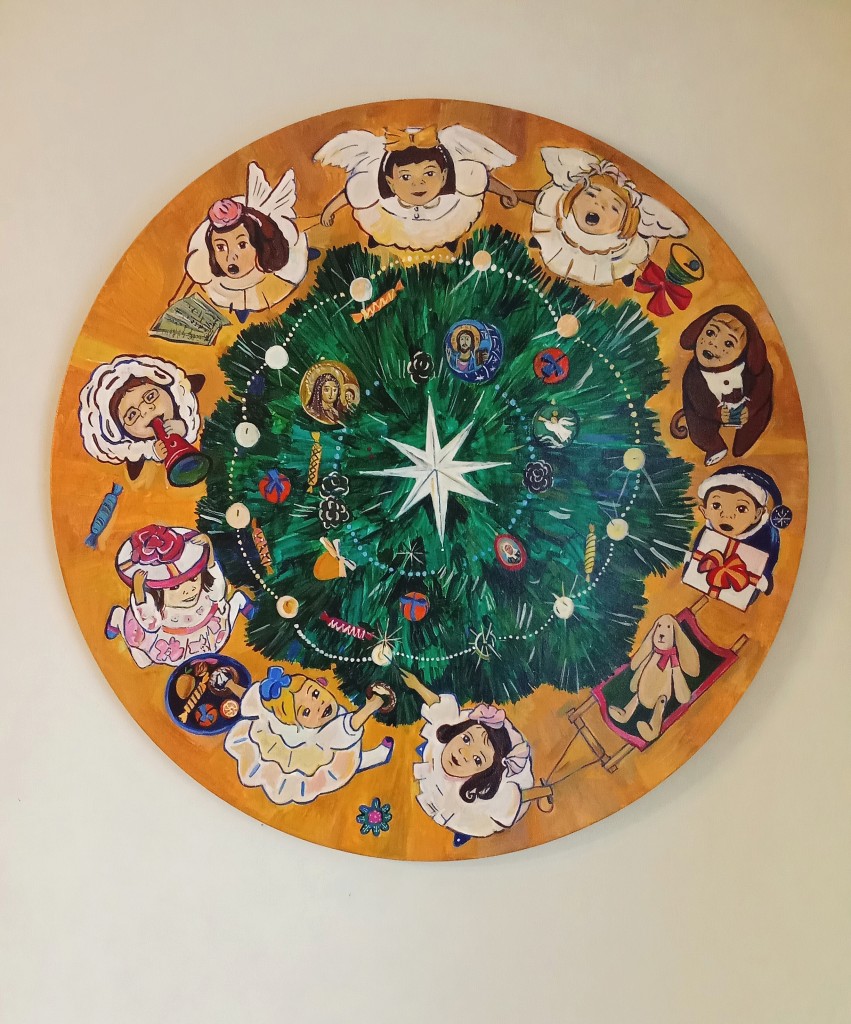 На картине изображены дети,которые готовятся важному празднику,к Рождеству.